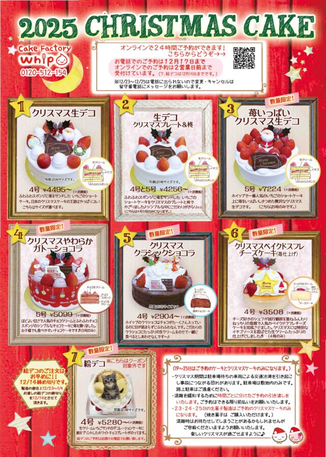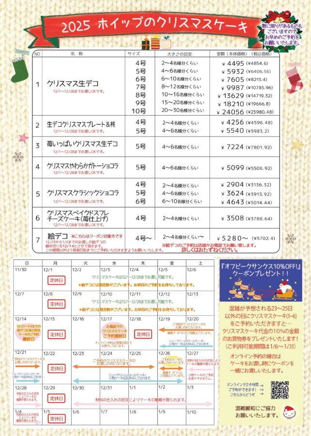 お待たせいたしました。クリスマスケーキのご予約はじまりました!オンライン予約はこちらからできますよ♪